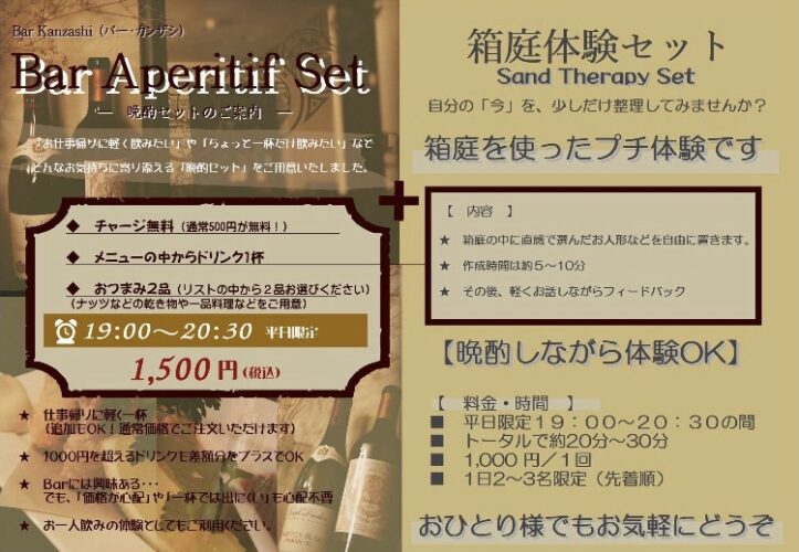 先日お伝えした「晩酌セット」に新たに「箱庭体験セット」をご用意いたしました。