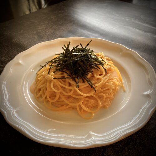 クリーミーな明太子のパスタにレモンを忍ばせ香らせた一皿です。